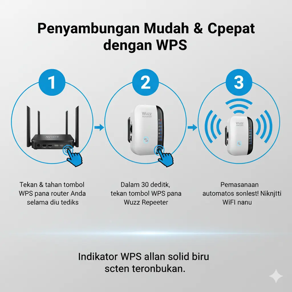 Jangan biarkan dead zone di rumah mengganggu kerjaan atau waktu santai Anda. Optimalkan jangkauan koneksi internet di setiap sudut ruangan dengan WUZZ Pro WiFi Extender. Simple, plug-and-play, dan tanpa kabel berantakan.